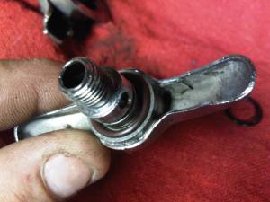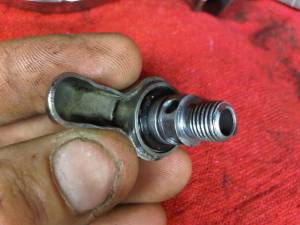 With the C-clip removed, hold the round end that the dipstick comes out of.