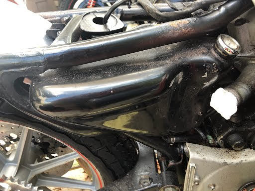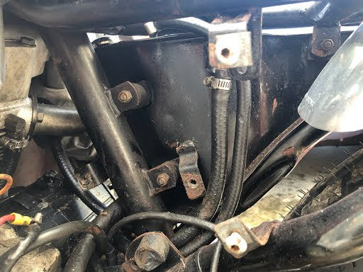 This oil tank (62470-83) has the 83-93 XL bracket setup but with a relief in the front side for the rear cylinder carb and a forward located oil filler plug.