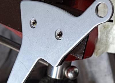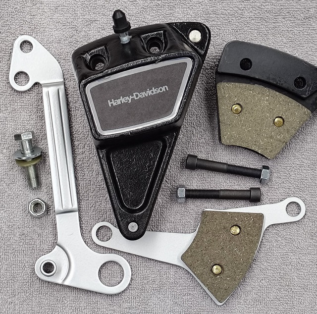 Changing the brake pads means removing the rivets and pads and installing new rivets to hold the new pads.