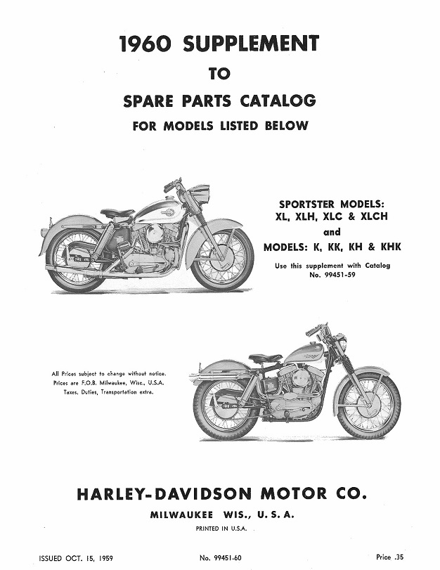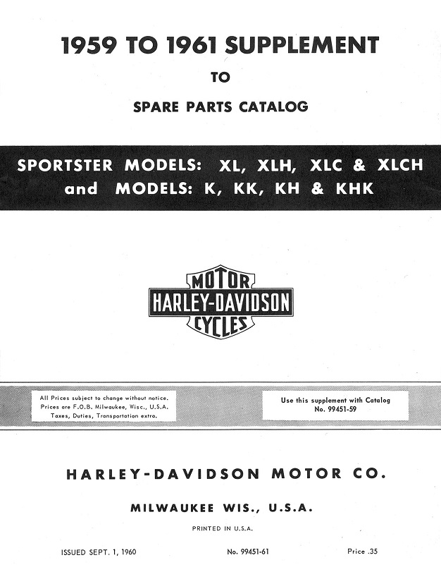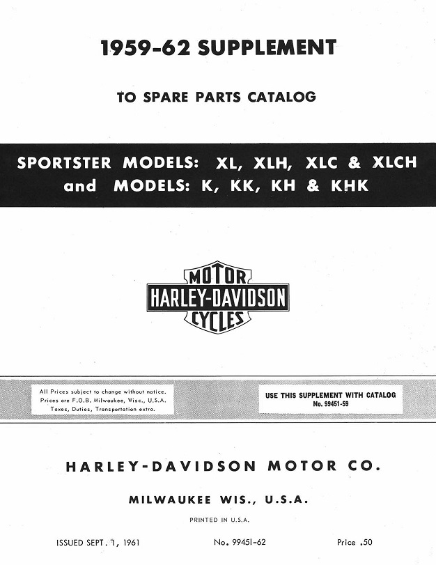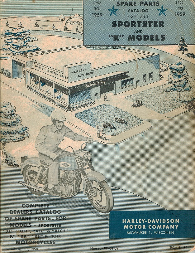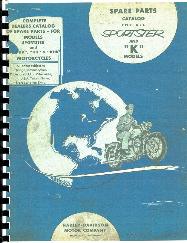 The 1957 Sportster parts catalog also covers 1952-1956 K Models.