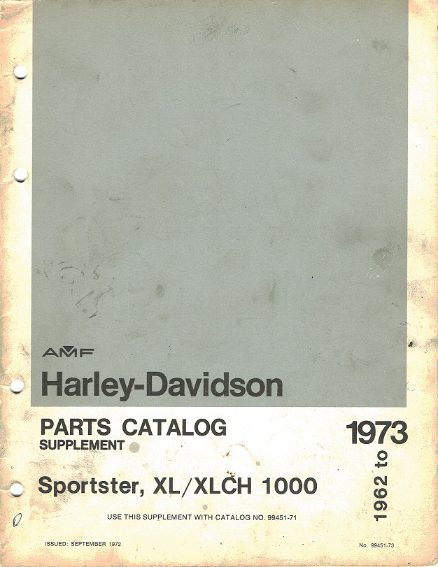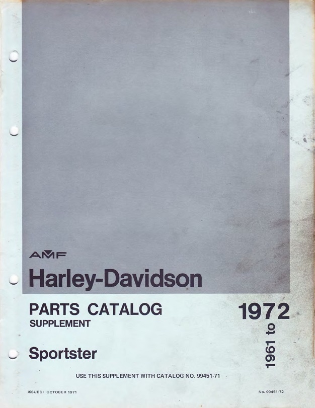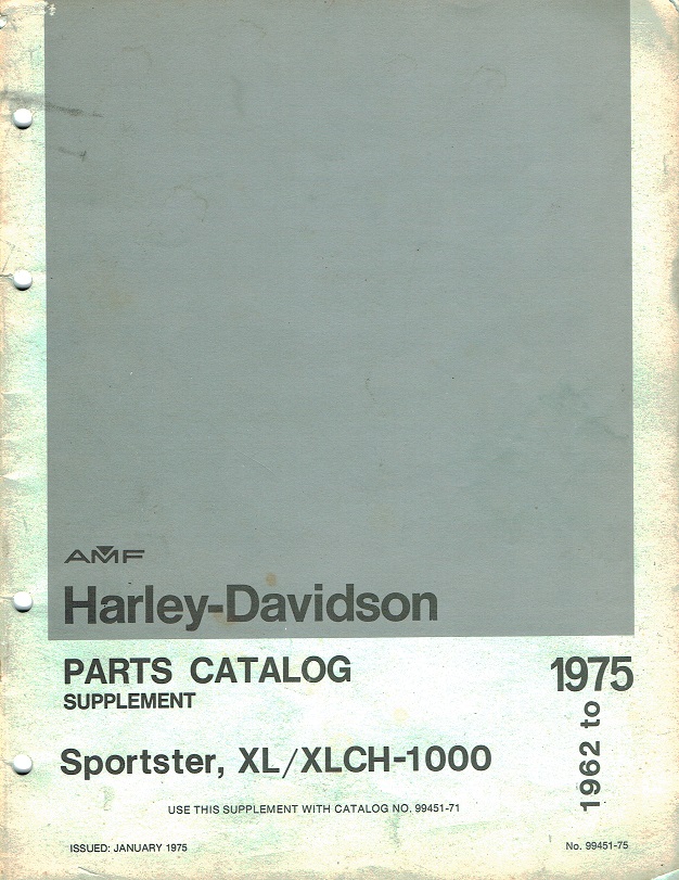 - The catalog part number for all Sportsters (excluding racing editions) is 99451-xx. The last two digits of the catalog’s part number reveal the ending year for which it services i.e. -57 for 1957 or -00 for 2000 without any added letters on the end. For long year span catalogs, it would end in -85 for a 79-85 catalog. These are referred to as first edition catalogs.