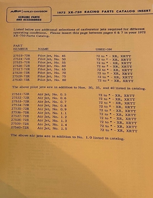 | 1970 XR-750 (99442-70R) | 1972 XR-750 (99442-72R) | 1972-1973 XR-750 (99442-72RA) | 1972-1975 XR-750 (99442-72RB) |
