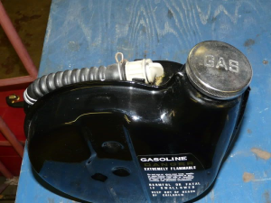 It also has a flexible hose and cap for emptying the gas into the bike's tank.