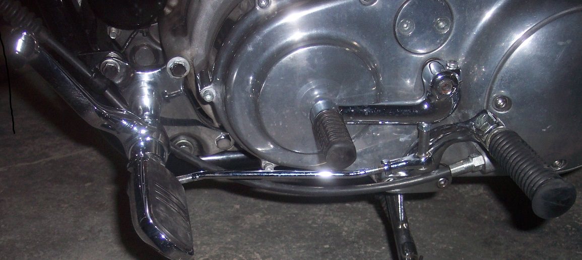 • This mod uses standard mid controls and slaved forward controls and was made using Drag Specialties forwards.