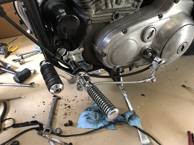 Below are pics of these forwards on a 90 883 Hugger. 1)