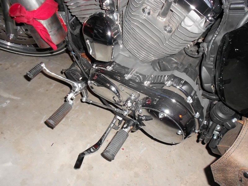 The bike below (2012 XL1200V) came with forward controls and mid pegs were added for more foot positions.