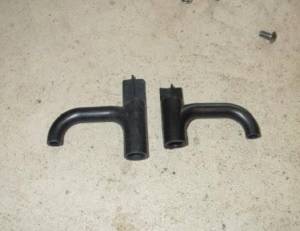 For this mod you need HD# 3577 (2). These are breather bolts for early EVO motors (not banjos) and cost about $3.50 each. Next, is part# 24922-93. These are the boots that will slip over those bolts. 5/16 OD vacuum line, a Tee fitting and 5 fuel injection clamps. NAPA auto parts is your best bet for non HD parts. The boots are pre-bent for another application. You need to snip them leaving an inch of the tubing.
