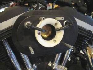 Here's an opportunity to paint the backing plate. Mask off the Air cleaner side and the area on the back where the carb gasket sits. I used HD aerosol part# 98606DH the same color as my motor. When your done this will look good. No horseshoe, hoses, or filters in sight. It looks very much like a factory set up.