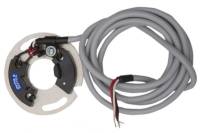 The Ultima Ignition Unit (53-644) is very similar to the Dynatek 2000i product (although the programmed curves appear to be different). It is a self-contained ignition module meaning the timing sensors are built onto the same timing plate, located in the 'nosecone'. The timing rotor cup passes thru the sensors on the back of the timing plate to trigger the ignition module.