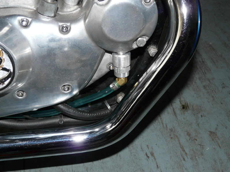 This way the oil mist gets directed out back and doesn't collect along the frame and engine.