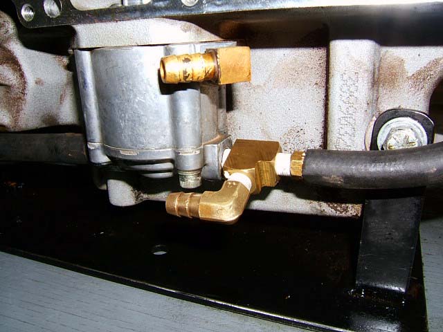 • Install the street tee and another 3/8“ hose barb fitting on the oil pump.
