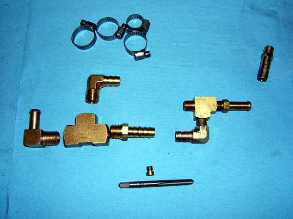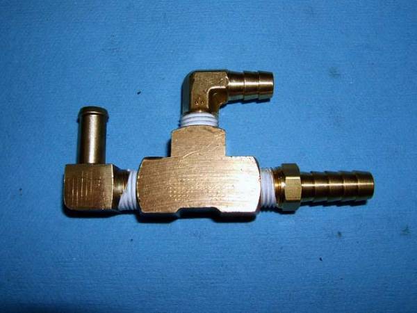 • Note that some fittings have an I.D. that's too big. If you can't find a fitting with a small enough I.D., you can do this section in smaller hose diameter (5/16” or even 1/4“), and if necessary, you can even tap the hose barb end. What we're doing here is creating a very restricted path for the pressure side to bleed off, so it's not necessary to do section this in 3/8” hose, I just chose 3/8“ to keep it all simple.