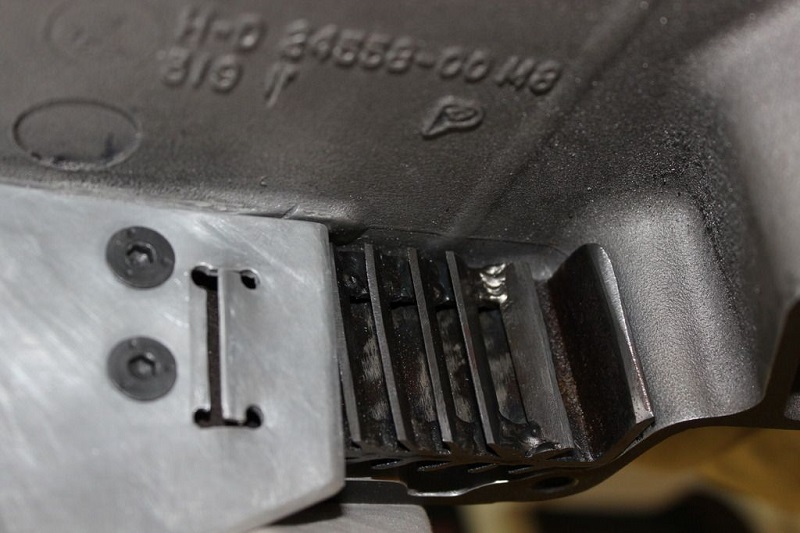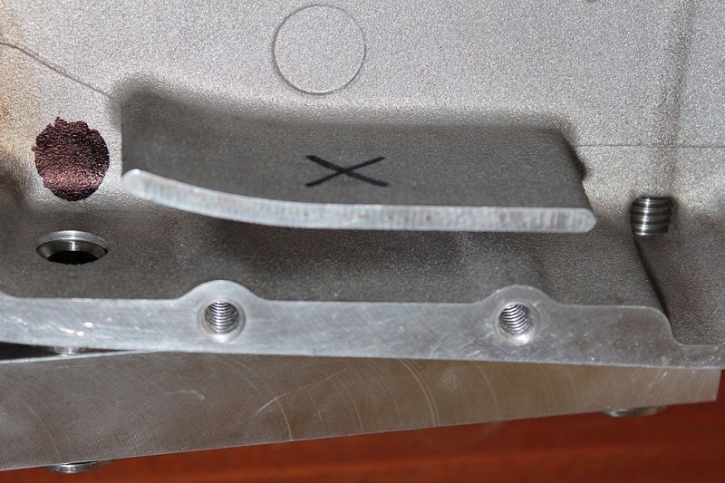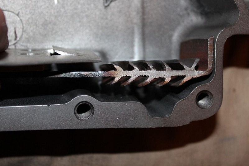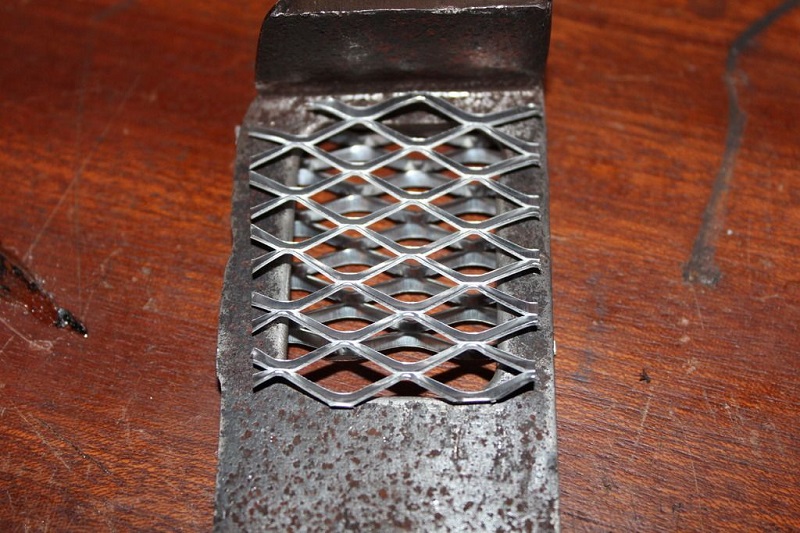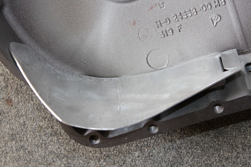 To re-direct the oil to the front of the sump, a raised expanded mesh was cut to make a pattern.