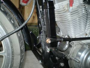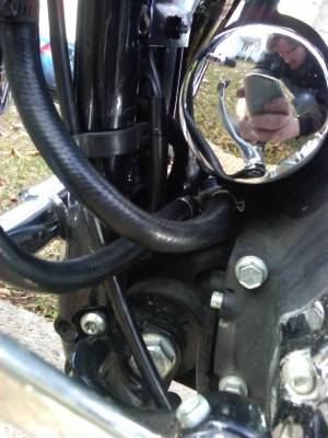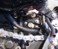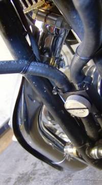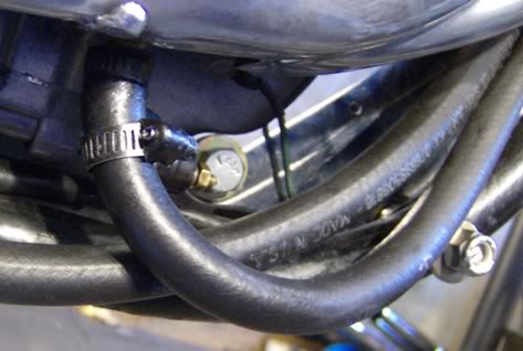 Next, extend the metal lines with rubber hose to the cooler on the left side of the bike.
