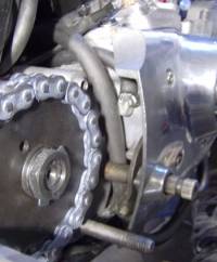 NOTE: The vent line was pulled up away from the chain and with a zip tie around the oil tank mount.