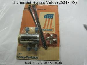 However, external thermostat bypass valves were sold for Sportsters starting in 1979: Chrome (26248-78) and Black (26251-78).