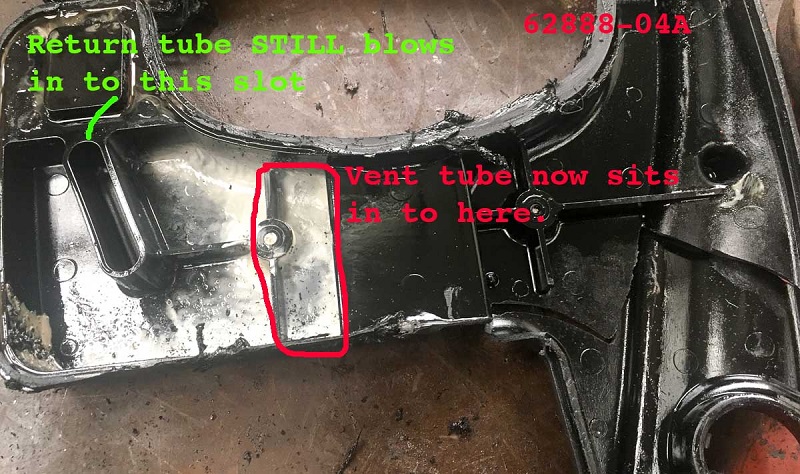 So it's only a slight improvement. Thicker oil can still pool in that shallow left compartment and hydro-lock the vent tube.