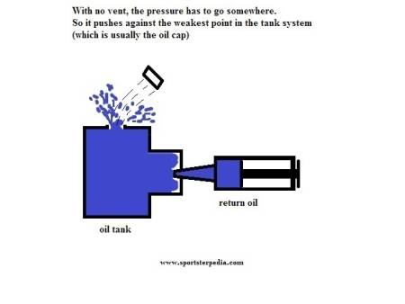 So if the vent is hydro-locked with oil, tank pressure could get very high and that's when you may end up blowing the cap off or cracking the tank seam.