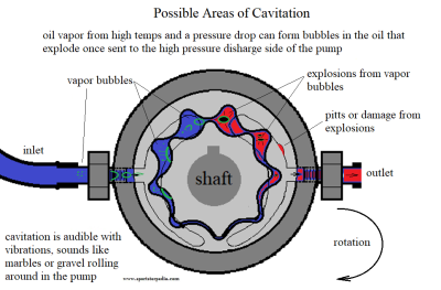 For each revolution of the pump, a certain quantity of fluid is enclosed and transported from the pump intake to the pump outlet irrespective of counter-pressure (back pressure from upstream restrictions). 9) That is, the amount of oil delivered from the pump does not change even though the different pressure heads do change downstream. The enclosed volume of fluid delivered per revolution depends entirely on the size of the displacement cavities in the pump (hence the name displacement pump). The maximum attainable pressure head increase is primarily dependent only on the mechanical strength of the pump assembly and the driving power available (engine RPM). The pressure head increase can be limited by means of a maximum pressure valve (relief valve, safety valve) installed in the system or integrated in the pump. Most positive displacement pump manufacturers advise to have a pressure regulator installed near the pump since it is not regulated. More RPM brings more oil delivery and thus more system pressure buildup.