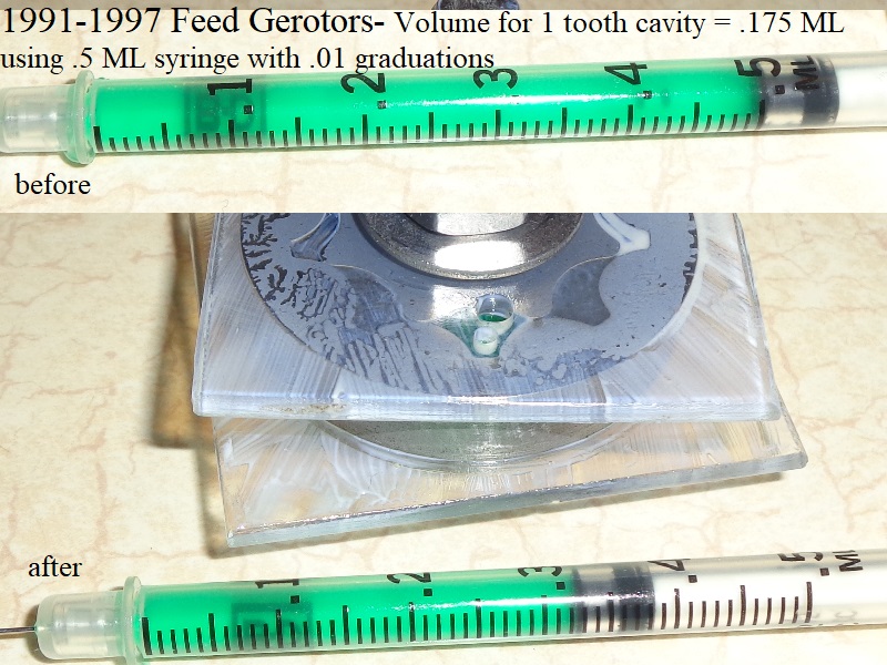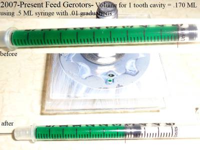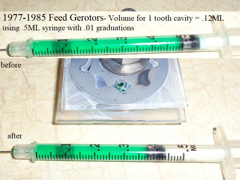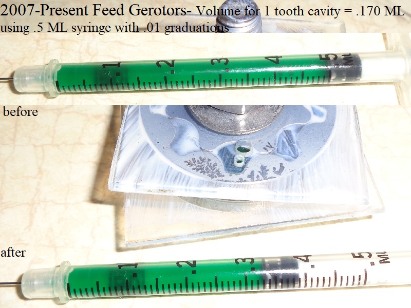 0.3cm³ = .018 ci³ volume (0.3 / 16.387064). - Volume of eight tooth cavities per 1 pump revolution = 0.144 cubic inches (.018 ci³ x 8)