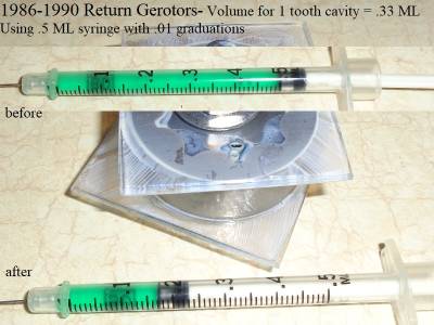 - Total projected volume from the return gerotors (CCing gerotors) was 62.08 oz/minute at pump speed 500 rpm.