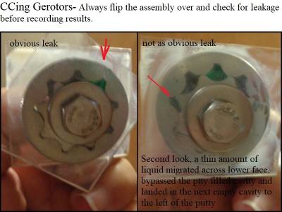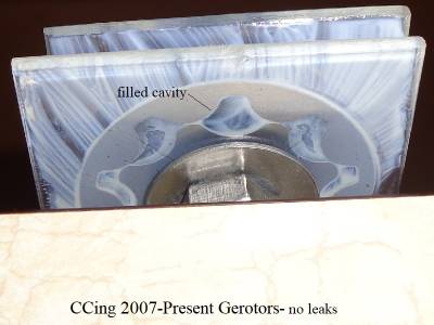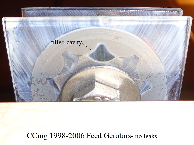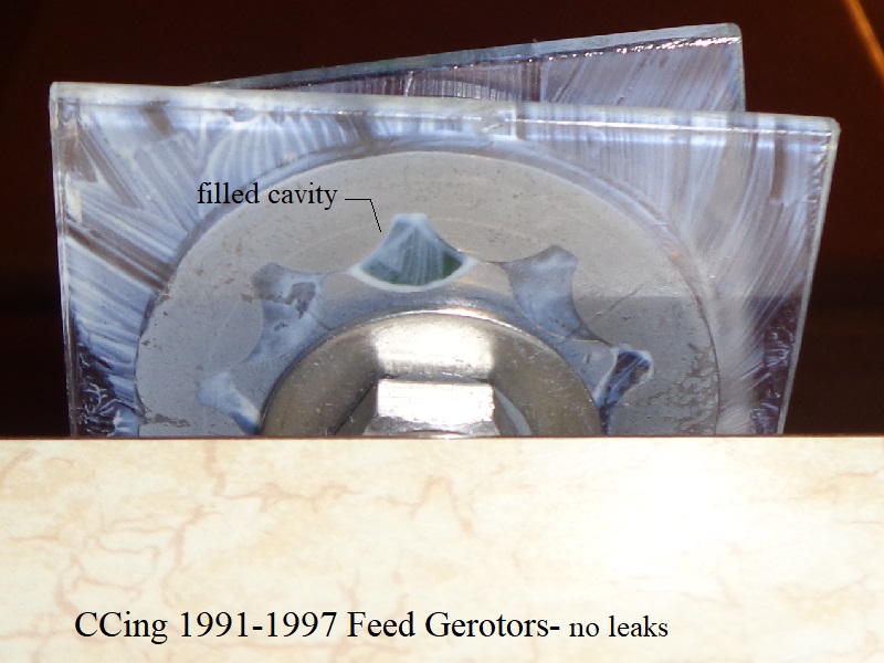 Result was the initial liquid drop sat on top of the big hole and blocked the cavity allowing it to remain dry while the gerotor face flooded.