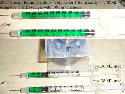 - One tooth cavity holds app 0.1 ml of volume or (0.1 cubic centimeters) or (.006 cubic inches).