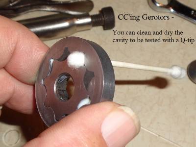 It's commonly known as CC'ing the chambers. Although in this instance, we are CC'ing one gerotor cavity and doing the math based on the results.
