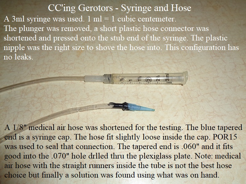 The “burette” used here was a 3 ML syringe graduated in 10ths of a ML. The tube is 1/8“ medical air tubing with 3 internal runners up and down the tube.