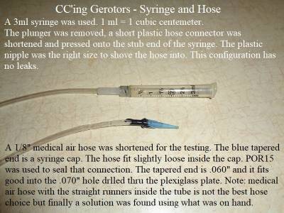 Flow testing was done measuring volume of the sump inlet port (cam port open to atmosphere) and cam inlet port (sump port open to atmosphere).