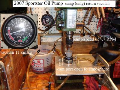 - The sump port hose was plugged off with a vacuum gauge off the hose and the cam port was open to atmosphere.