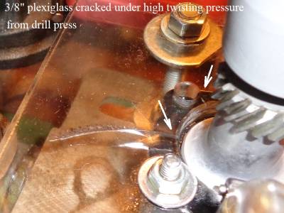 A center hole was drilled thru both plates 3/8” with a drill motor and the edges file (drilling speed melts plexiglass and goops up around the hole).