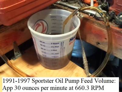 See also Measuring Feed Oil Volume (flow rate) of the -72 Gear Type Oil Pump in the Sportsterpedia.
