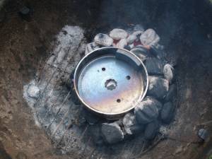 - This one was set inside a charcoal grill with charcoal laid in a circle around it. The best way to do this is wait until the rotor has turned color completely.