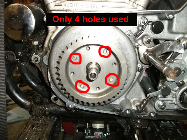 | Mounting the 8 hole sprocket to the 4 hole rotor is not an issue. 4 holes in the rotor assembly line up perfectly leaving 4 holes empty in the new sprocket. |