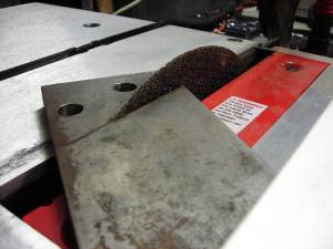First, protect your eyes when cutting. An old helmet can be used for protecting them from flying shrapnel.