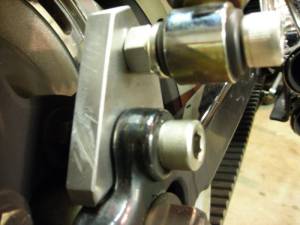 The block wont lift off the swing arm due to the fact that the tail end of the block is long and as long as the bolt is in the hole, it can't rotate. 1)