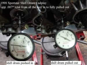 Due to shift drum endplay, a “shift ready” pin can technically be shifted outward or inward (L or R sitting on the bike).