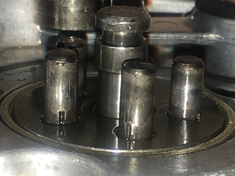 Sometimes when the pawl is grabbing a pin and moving the drum, a pin will be in the right condition to be weak in it's pressed in tightness.