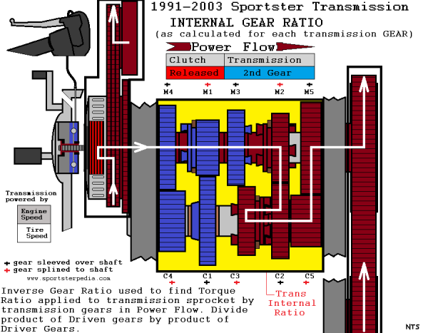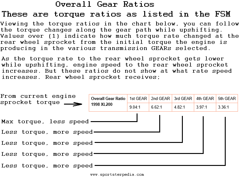 • The Overall Gear Ratio for a stock 1998 XL1200 2nd GEAR is (6.6192:1).