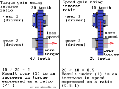 (which represents a change in torque or speed where the driven gear is either smaller or larger in teeth count than the driver gear and to what degree).