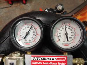 Then, when you take it later as the engine life is used up, you would notice a lower pressure on the second gauge, indicating an increase in leakage. 7) - A leak-down test should be done: