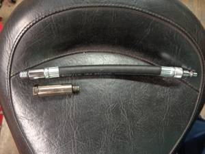 - Install the short air hose via a 12mm adapter into the spark plug hole.