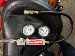 So if you want the acid test of how the rings are sealing, it should be done at or close to TDC. Put the bike in high gear to stop piston moving. 8) - The test takes only a few seconds to repeat so you can also test several locations as long as both valves are closed.