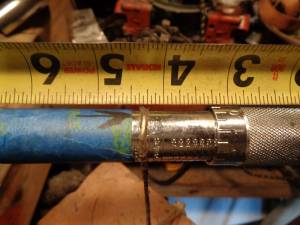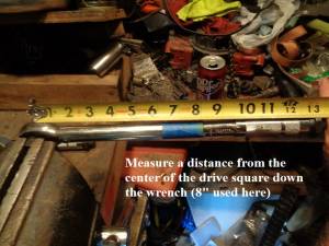 The exact point of measure is not as important as the measurement number itself. - Measure the distance in inches from the center of the drive square down the handle.