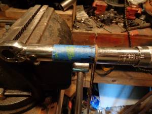 If it does, make a mark on the exact spot where it clicks. - If it doesn't click on the mark, ease the weight farther down the handle toward the end of the wrench until you find the exact point of click.
