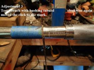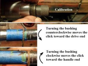 On the test wrench, the bushing was turned clockwise originally and the wrench clicked even farther toward the handle end once tested.