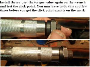 - Repeat this calibration procedure until you get the wrench to click on the length mark as in the test check above.