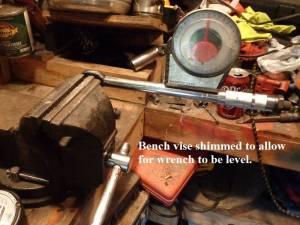 The weight pulls differently on the handle if the wrench is allowed to turn sideways in the vise before or during the test, changing the results.