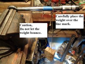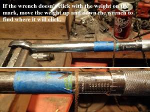 | Gently place the weight on the wrench (don't let it bounce). Move the weight up and down handle to find point of click 7) | ||